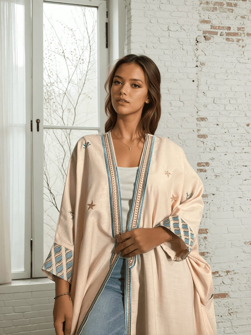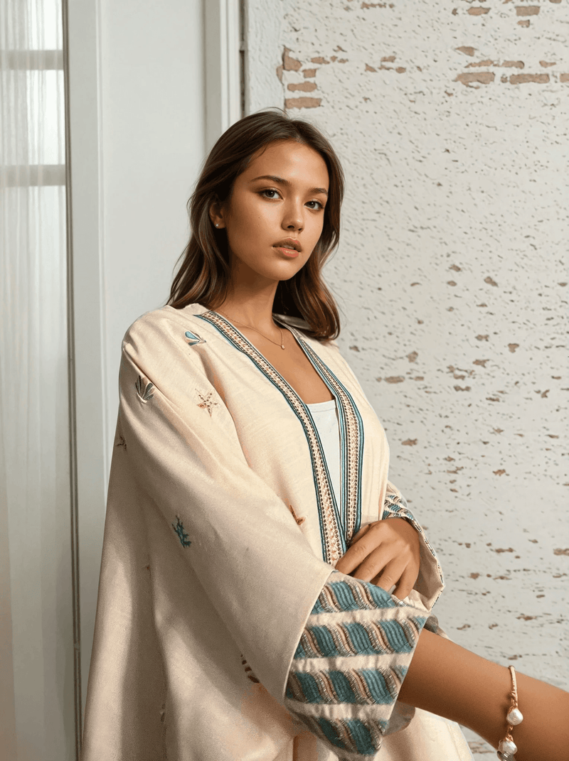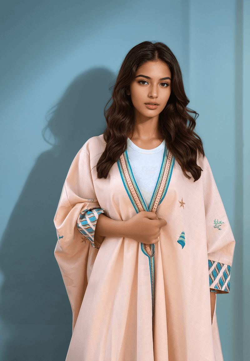طقم عباية "بيتش بيرفيكشن" مصمم ليُبرزكِ بين الجميع. هذه العباءة الأنيقة والراقية مطرزة بتطريز فريد من نوعه برموزنا الخاصة. مصنوعة من أجود الخامات، هذه العباءة ليست أنيقة فحسب، بل مريحة أيضًا. يضفي اللون الخوخي لمسة من الدفء والأناقة على إطلالتكِ، بينما يُبرز التطريز الدقيق ذوقكِ الرفيع.