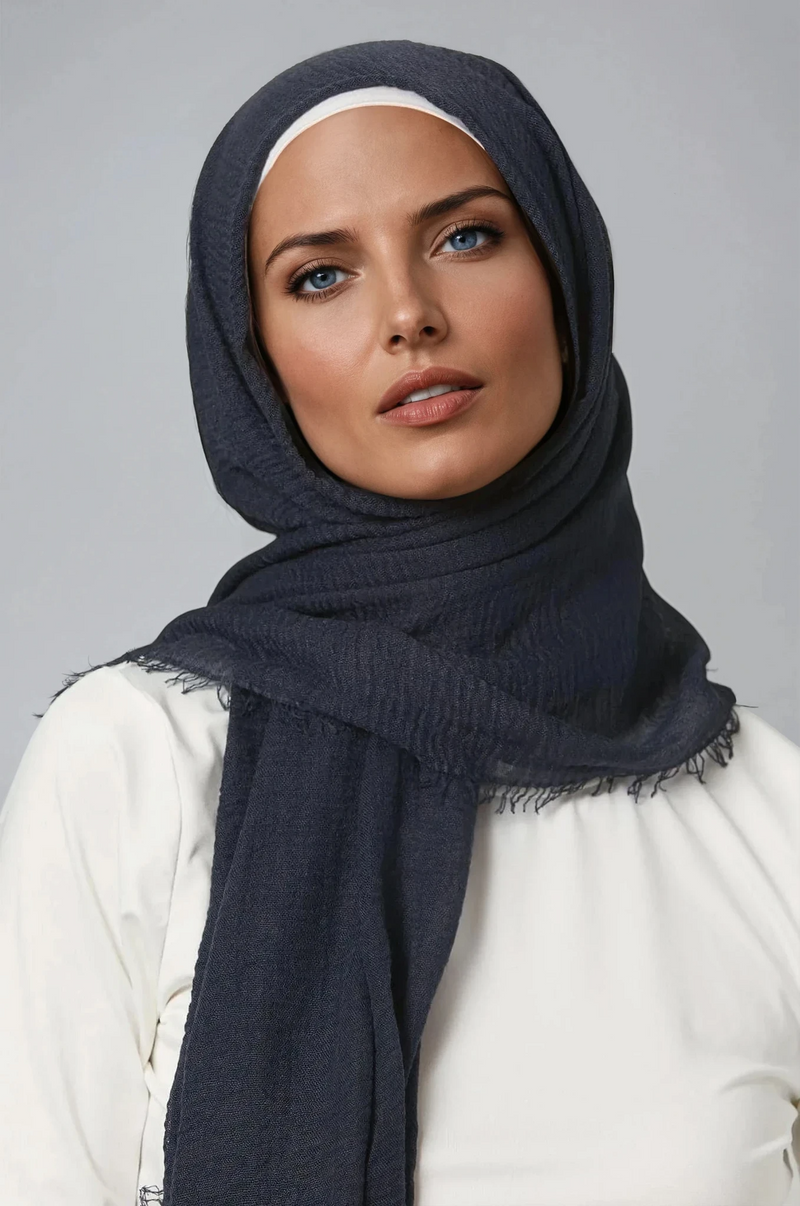 وشاح من القطن العضوي المجعد - أزرق داكن مغسول