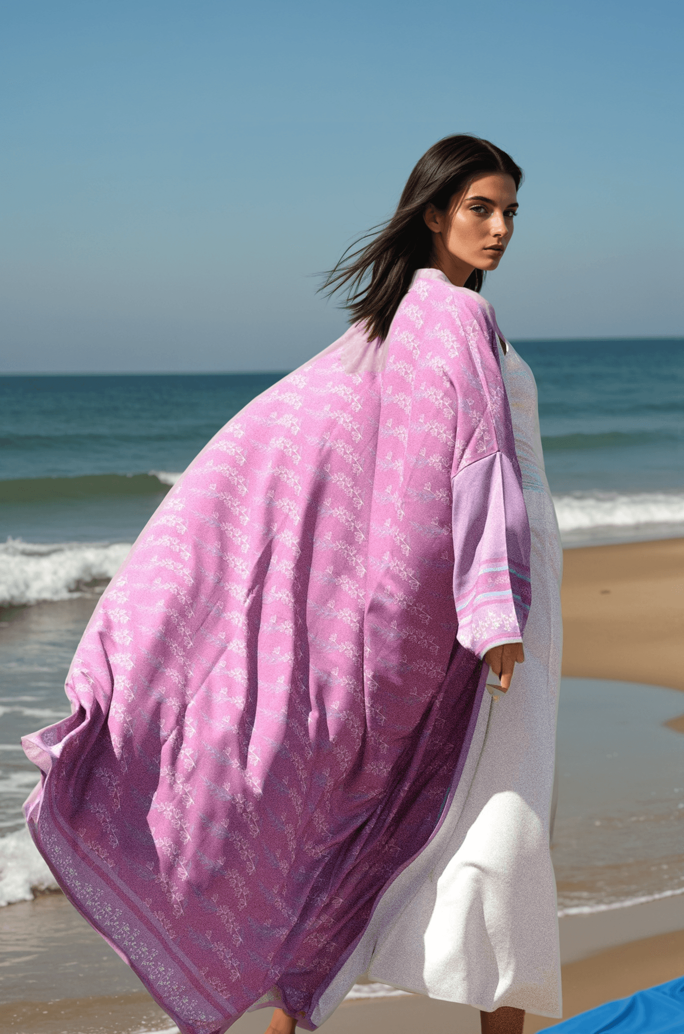 صُمم هذا الثوب ليمنحكِ مظهرًا أنيقًا ومريحًا، فهو يسمح بمرور الهواء ويمنحكِ الراحة. سواءً كنتِ على الشاطئ، أو في مقهى، أو على مواقع التواصل الاجتماعي، سيمنحكِ هذا الكيمونو المطبوع إطلالةً رائعة! هذه العباءة لا تتضمن وشاحًا، يمكنكِ تنسيقها وتنسيقها من خلال صفحة الأوشحة لدينا.