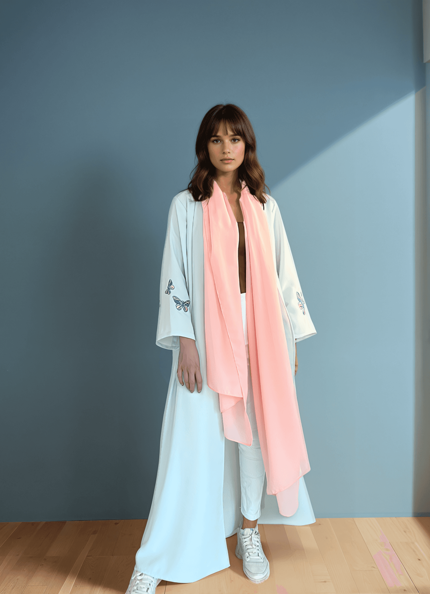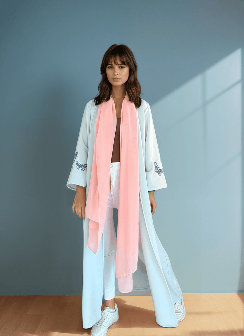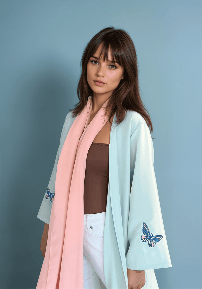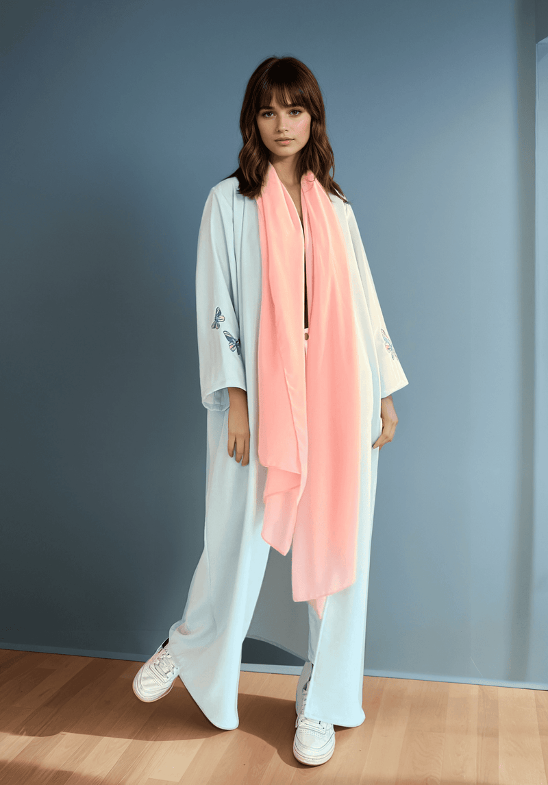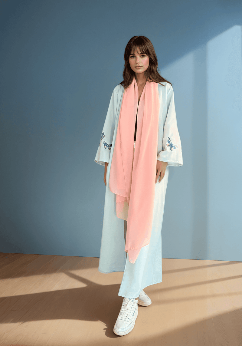 Butterflies in bloom, a motif of freedom and transformation, reimagined across this abaya.