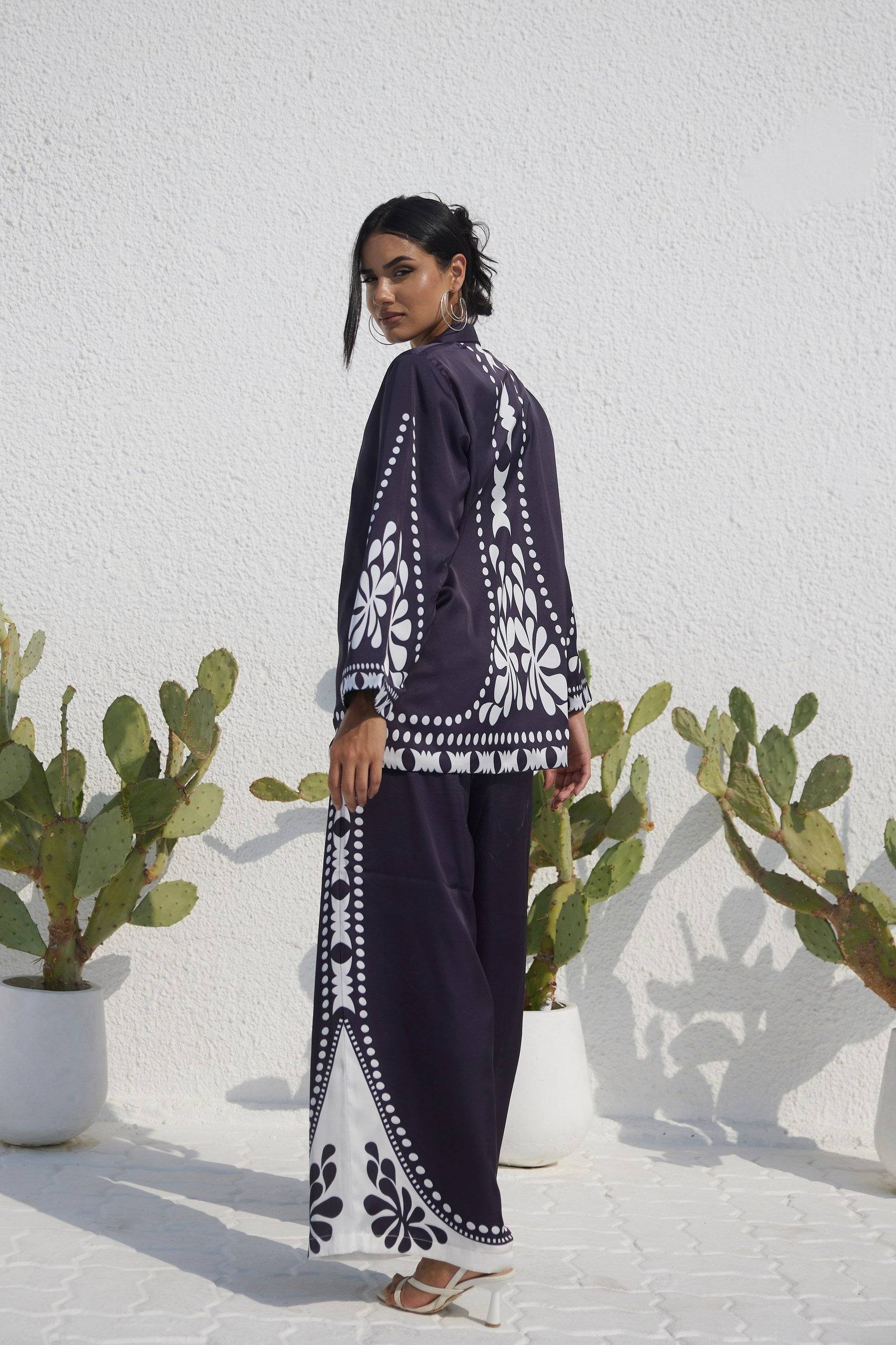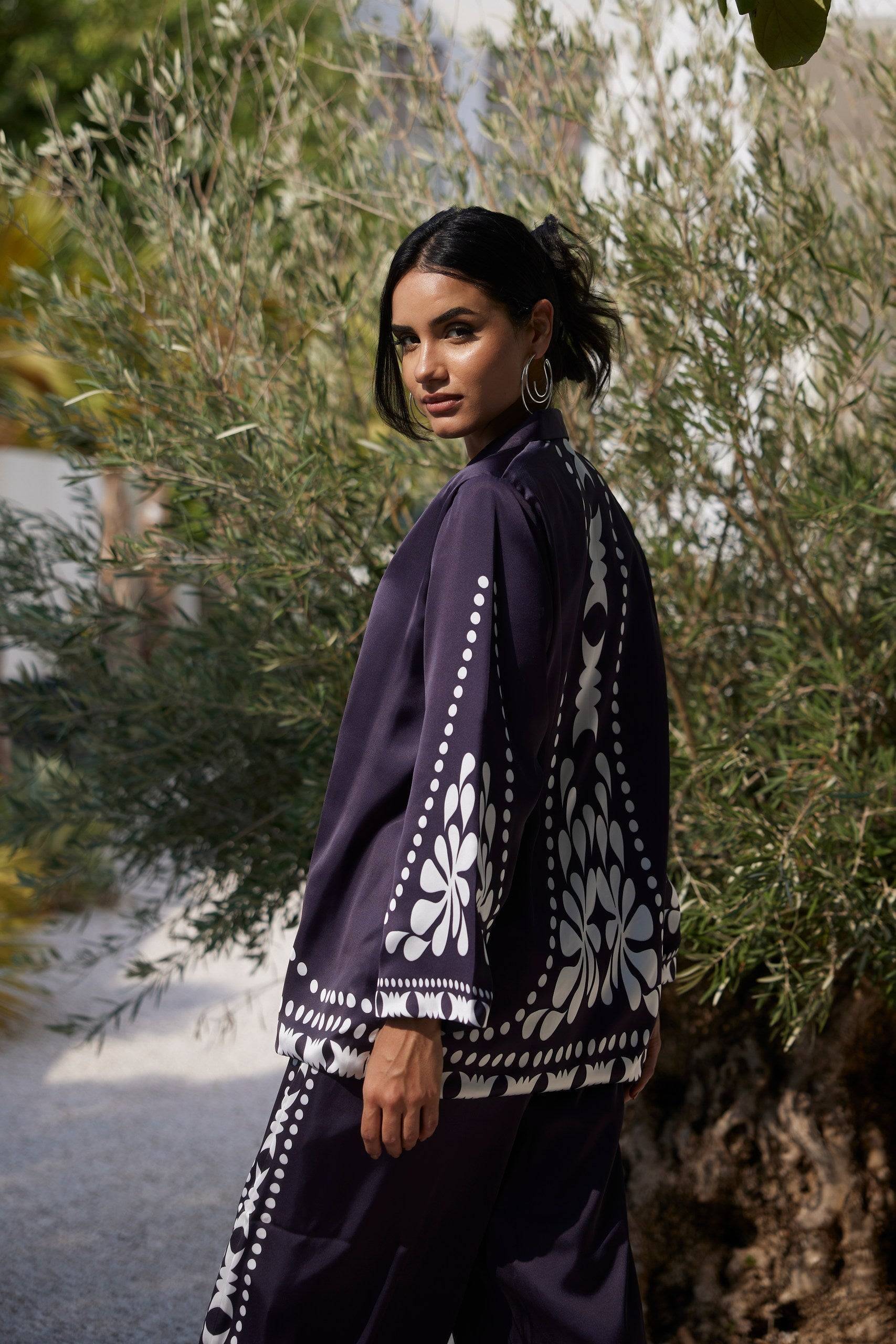 Introducing the Busy Sandra Blazer Top—a sophisticated piece inspired by the elegance of Japanese design. The set features bold patterns that reflect the calm and elegant beauty of Japan, making it a stunning choice for any stylish occasion.