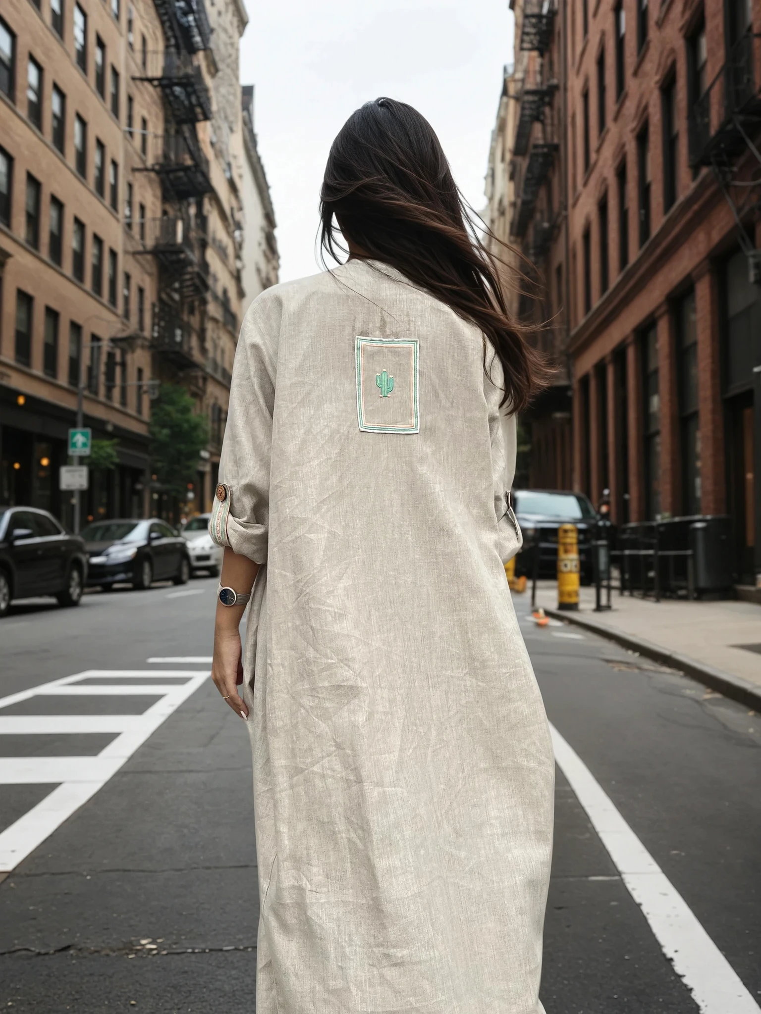 Kaktus Vera keeps it cool and minimal in the front — but turn around, and you’ll find a custom embroidered cactus framed like a tiny gallery piece.