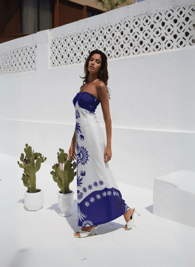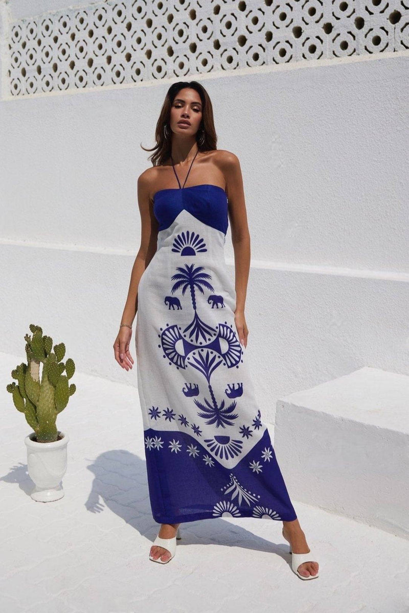 Step into the spotlight with the Kendwa Dress this dress is your ultimate summer showstopper, perfect for those sun-kissed days and moonlit nights. we created the elements as a fusion of Saudi and African influences, inspired by a vibrant journey to Tanzania. With its flattering cut, the Kendwa halter neck dress hugs in all the right places, giving you that perfect balance of comfort and style.