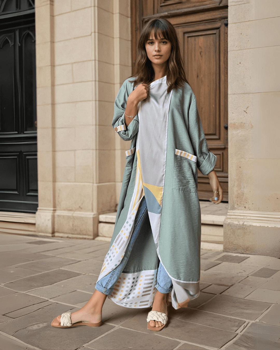 Our Luna Smith signature round cut design is fashionable and easy to throw on with pockets on the side you can walk around hands free and ready to face the day. Inspired by French interior design elements and soft colors that reflect all types of skin tones.