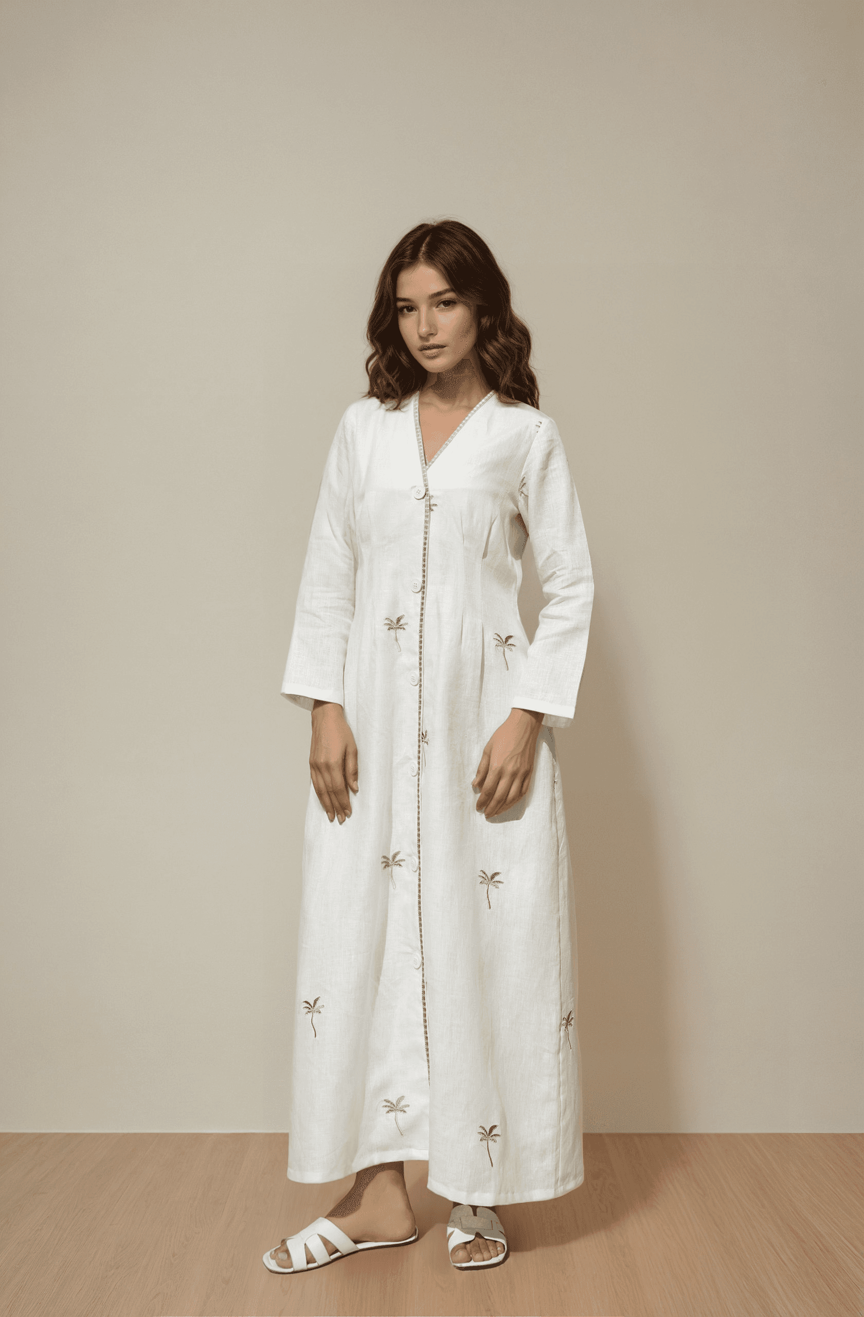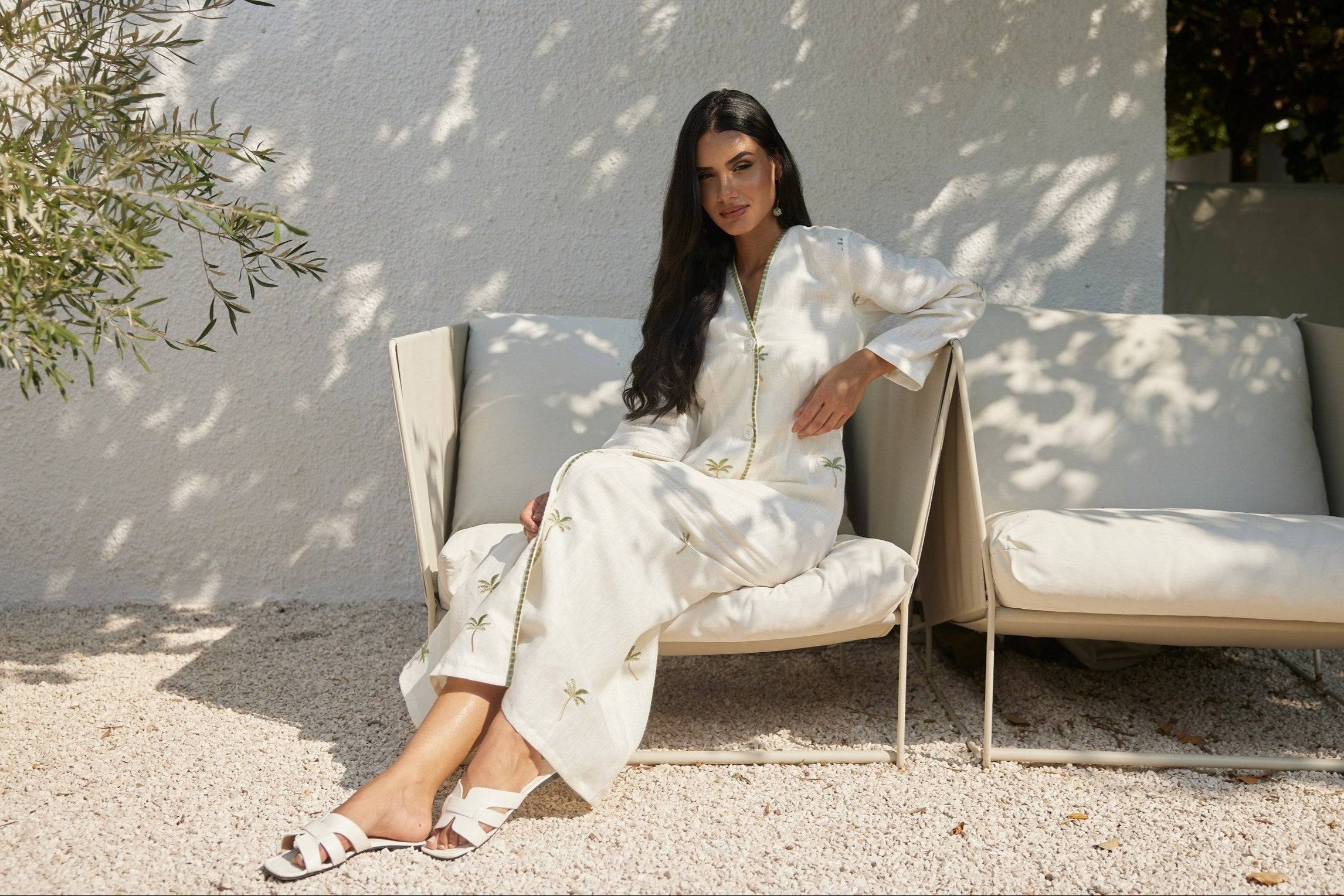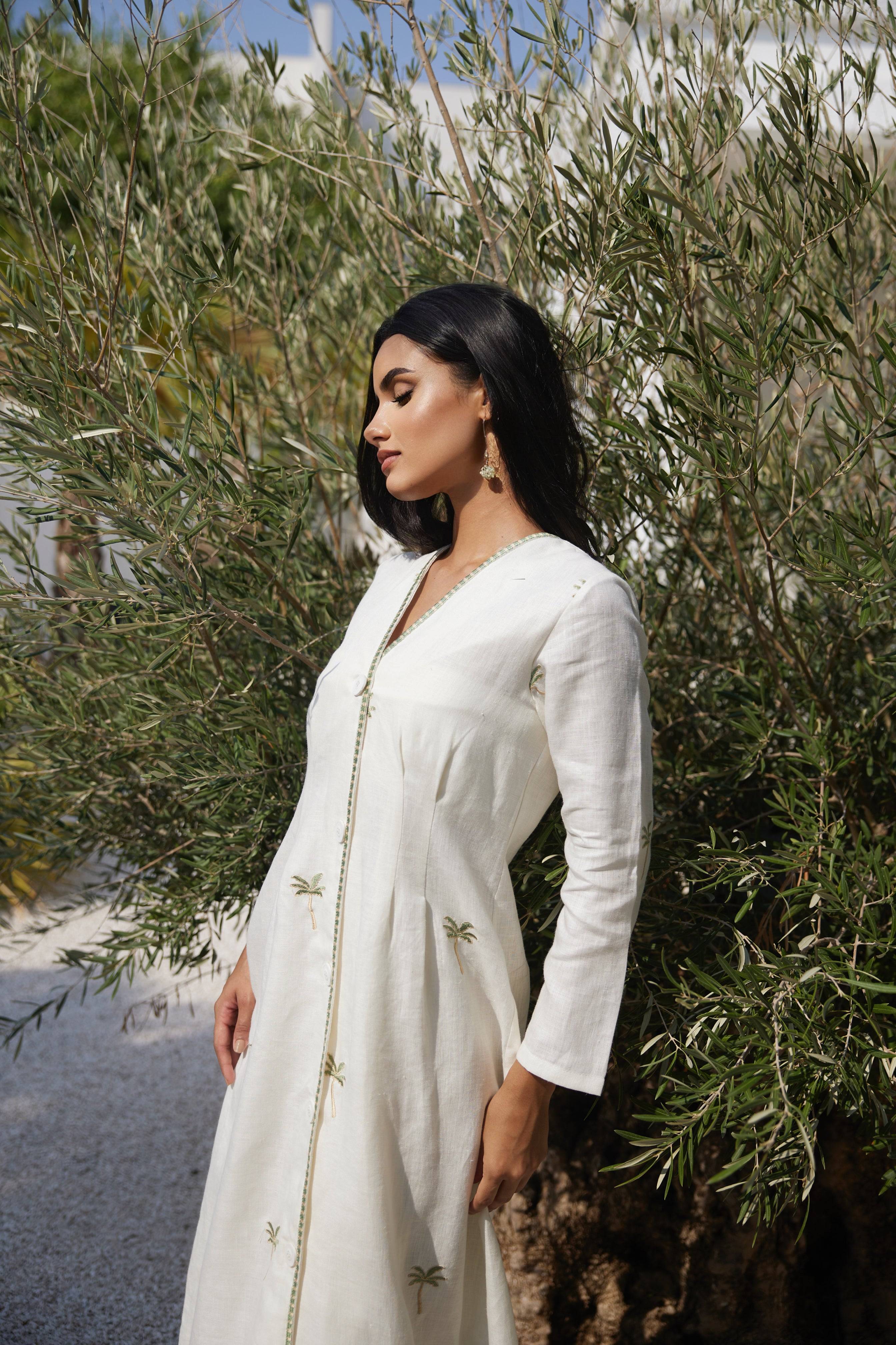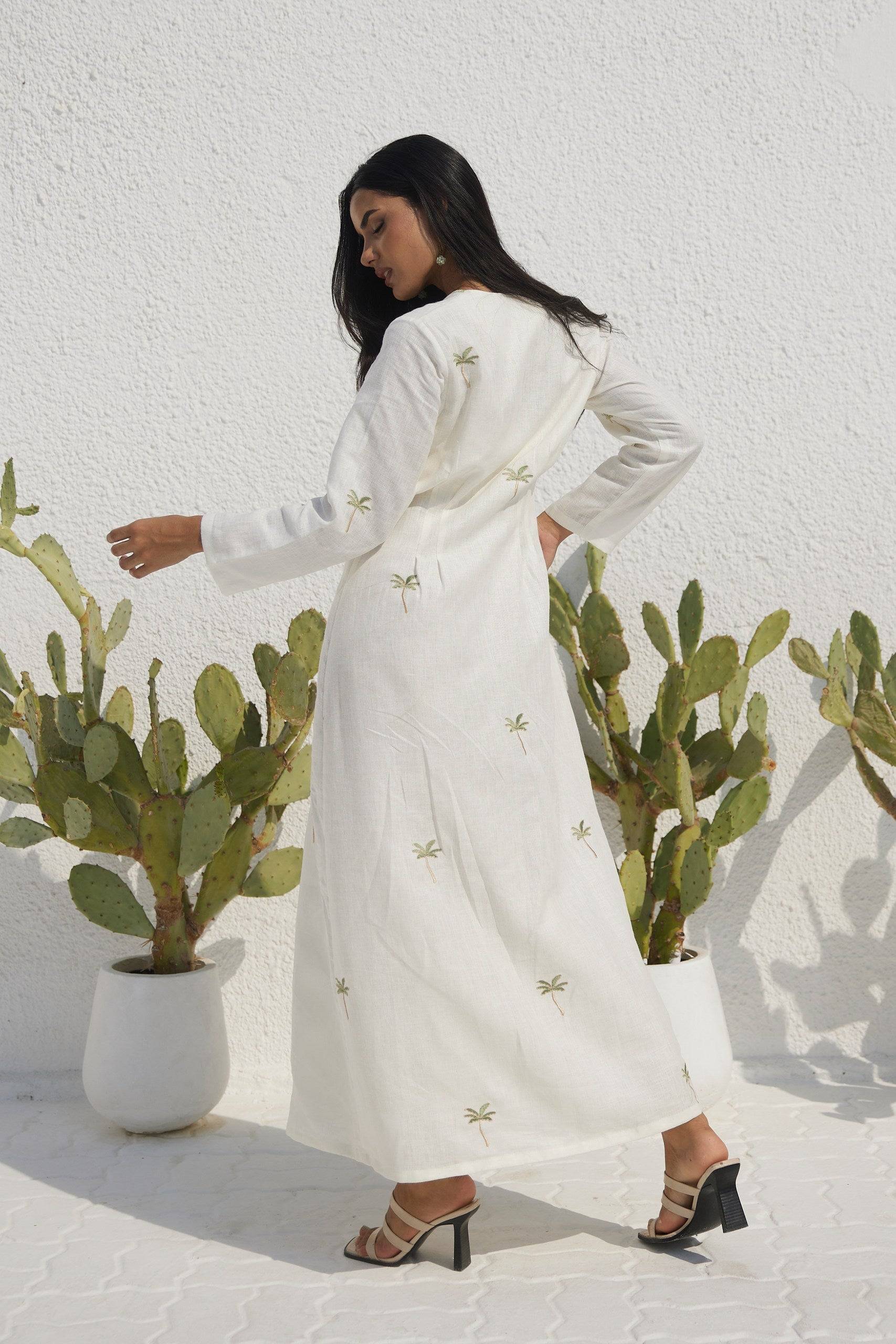 Meet the Palm Paradise Dress—your new favorite go-to! Made from dreamy organic Italian linen, it's embroidered with our playful palm tree icon and features a cinched waist that flatters every body. Want it shorter or longer? Just drop a note in your cart!