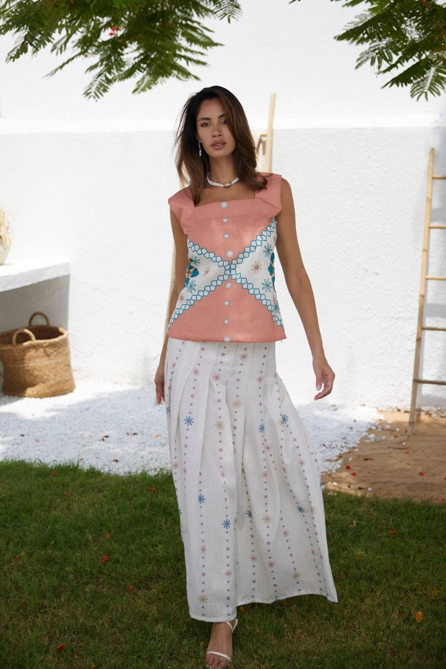 Inspired by the vibrant culture of Mexico, this set features intricate patterns and colorful motifs that capture the essence of Mexican artistry. The skirt combines traditional design elements with a modern silhouette.