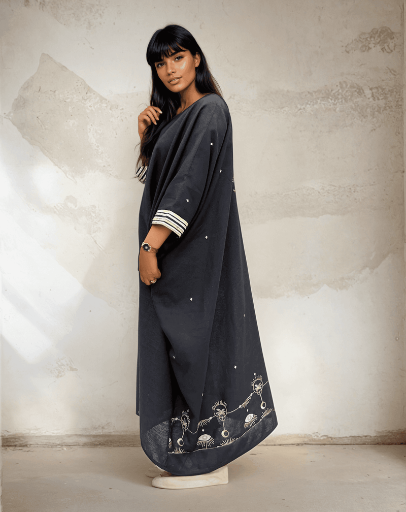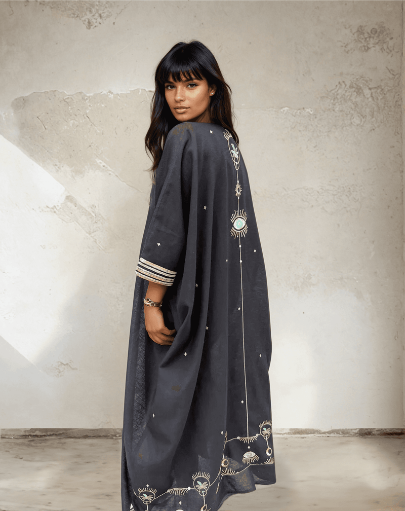 Our most-loved statement piece, the Gypsy Heart Abaya draws from Egyptian-inspired artistry and detailed embroidery to create something truly unforgettable. With a silhouette that blends cultural richness and contemporary edge, it’s made for those who dress to stand apart.