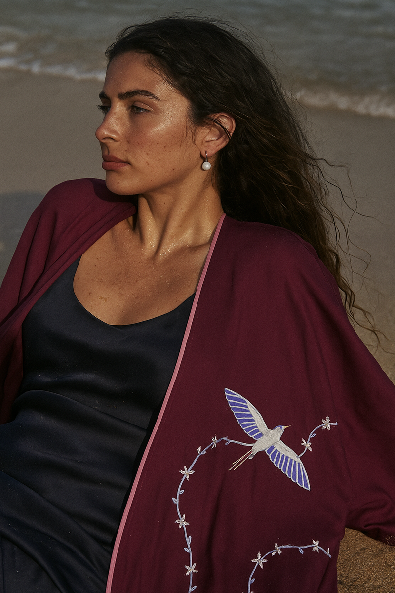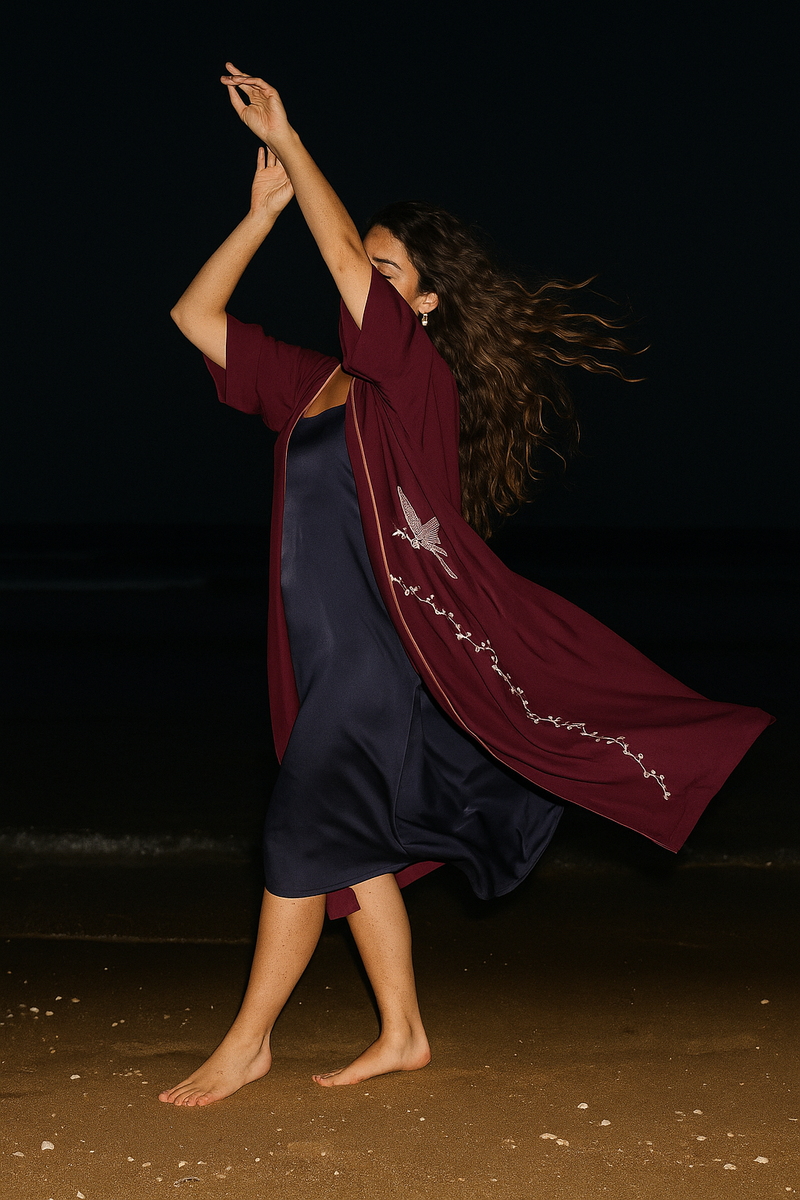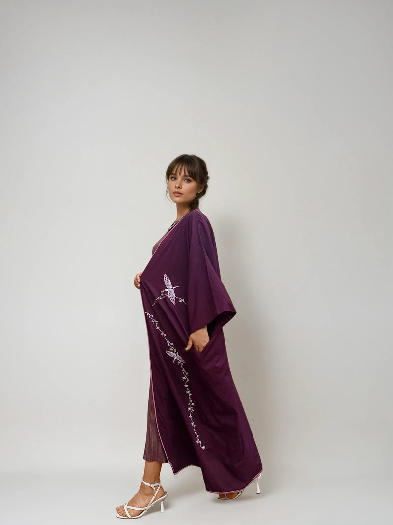 Majestic in name and presence, this embroidered abaya was created as a true statement piece.