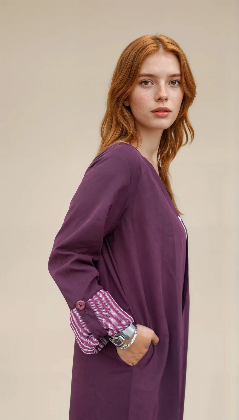 With stylish striped sleeves and hidden pockets for that extra touch of convenience, it’s as functional as it is fashionable. Fashion tip: Pair it with sneakers for a casual day out or dress it up with heels. PS: this abaya is sold without a scarf.